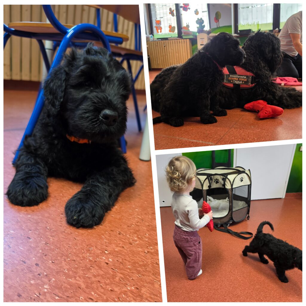 🐶 W tym tygodniu wpadła do nas jak burza niezwykła psia ekipa! 🐕⚡ Odwiedziły nas aż trzy urocze szczeniaczki wraz ze swoją ciocią Tajgą z Czarna Perła – zajęcia edukacyjne z udziałem psów, dogoterapia ❤️